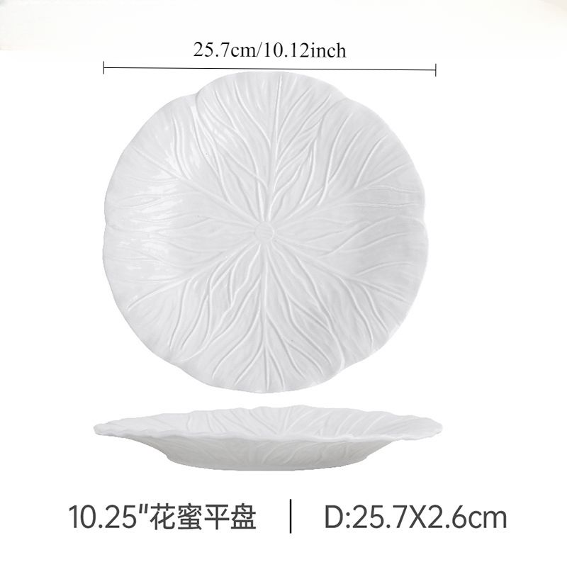 Nordic Luxury Flower Ceramic Bowl Pure white creative cabbage relief tableware Fruit and vegetable salad bowl, large soup bowl