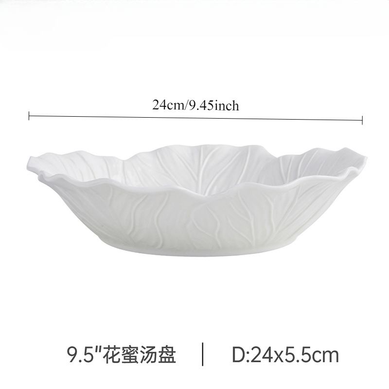 Nordic Luxury Flower Ceramic Bowl Pure white creative cabbage relief tableware Fruit and vegetable salad bowl, large soup bowl