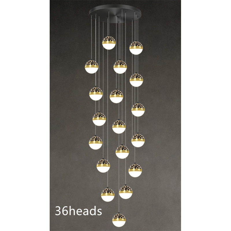 Nordic Luxury Luxury Villa Duplex Staircase Chandelier Black tricolor dimming 6heads