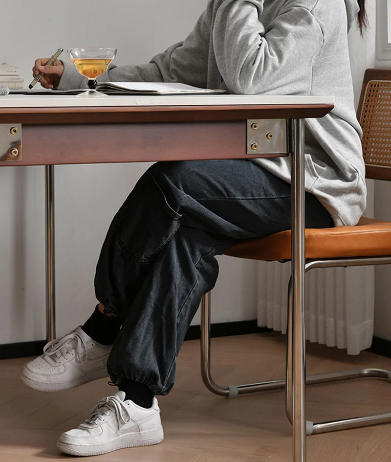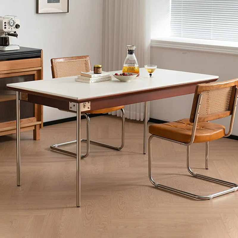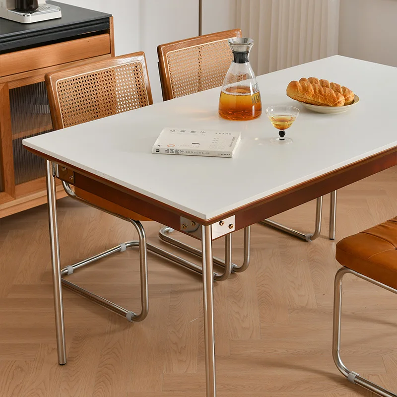 Nordic Retro Rock Slab Dining Table with Stainless Steel Leg Home Rectangular Kitchen Dinner Table Modern Dining Room Table Sets