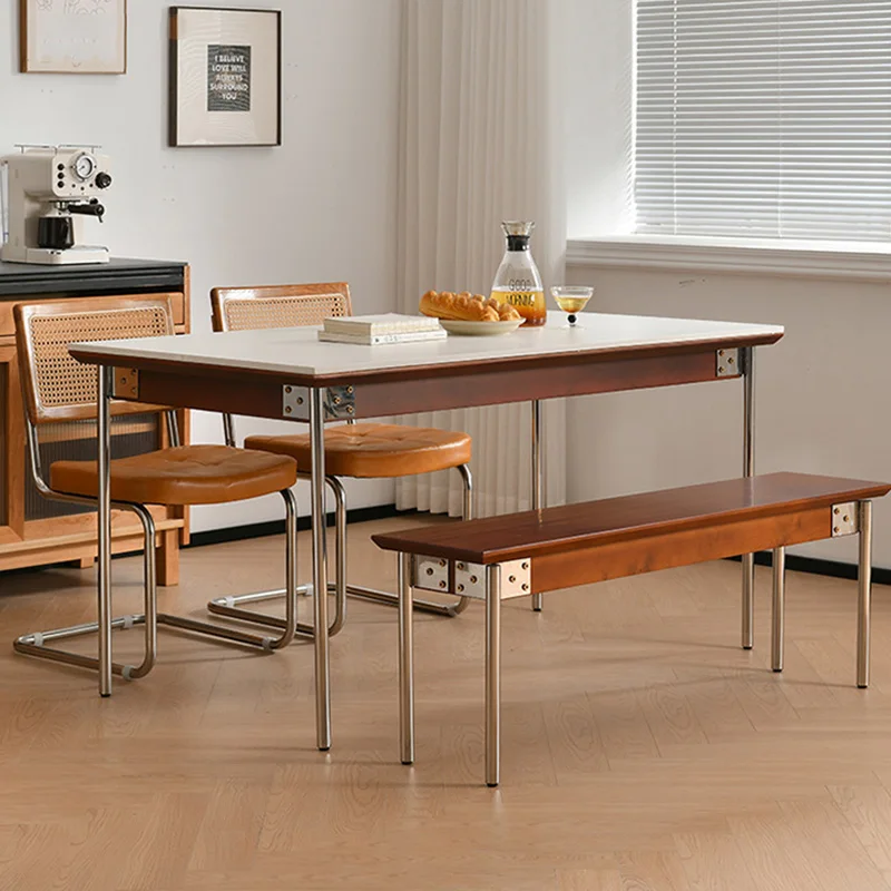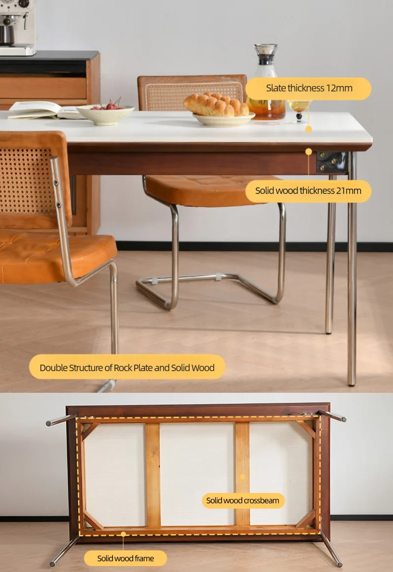 Retro Nordic Rock Slab Dining Tables with Sturdy Stainless Steel Leg Home Rectangular Restaurant Kitchen Dinner Table Modern Durable Dining Room Table Chair Sets