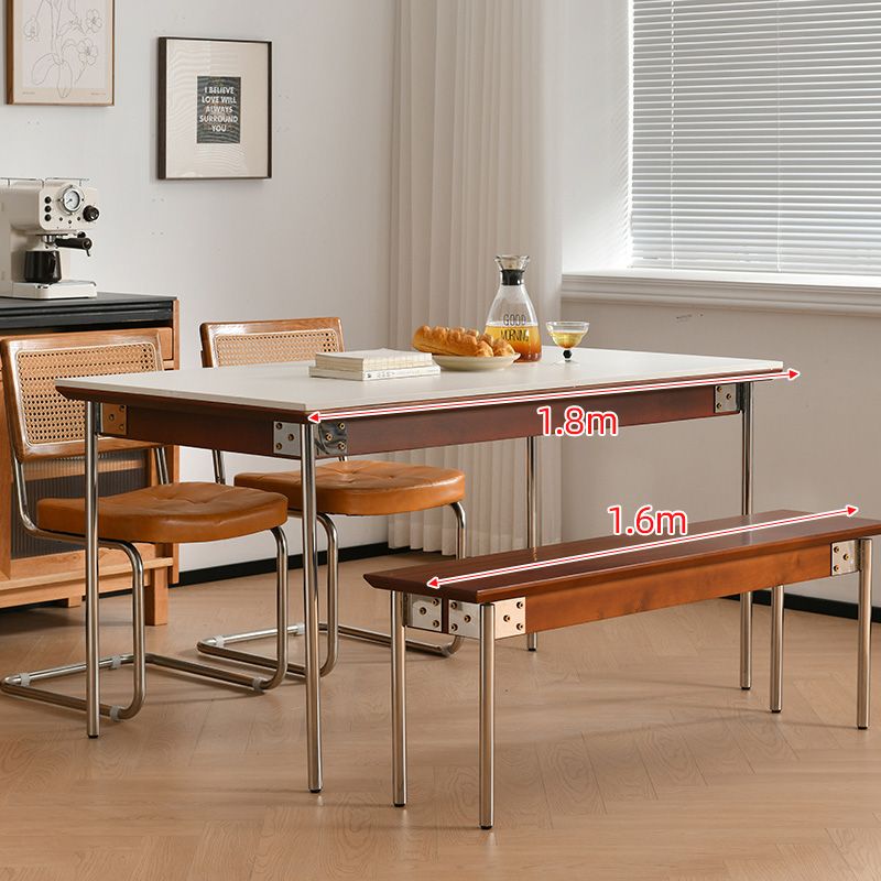 Enhanced Load-Bearing Capacity: The solid wood core and stainless steel legs give the table extra strength to support large meals and gatherings.