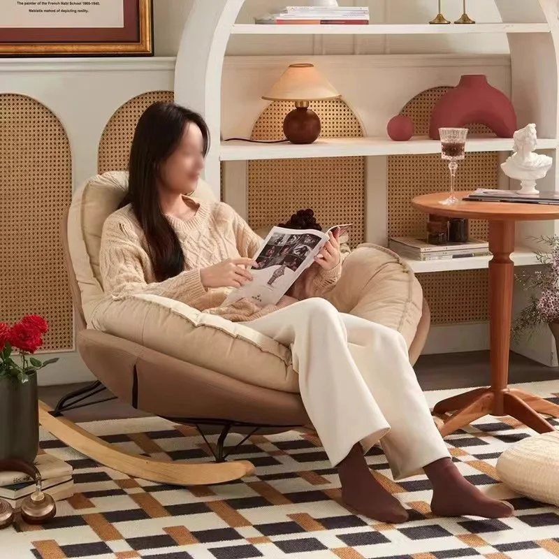 Nordic Rocking Lounge Chair for Living Room Comfortable Soft Relaxing Chairs with Metal Frame Home Bedroom Sofa Chair Furniture