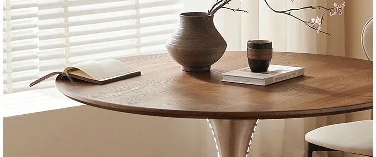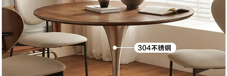 Nordic Round Table Simple Antique Retro Designer Ash Wood Table Top and Stainless Steel Legs Dining Room Furniture