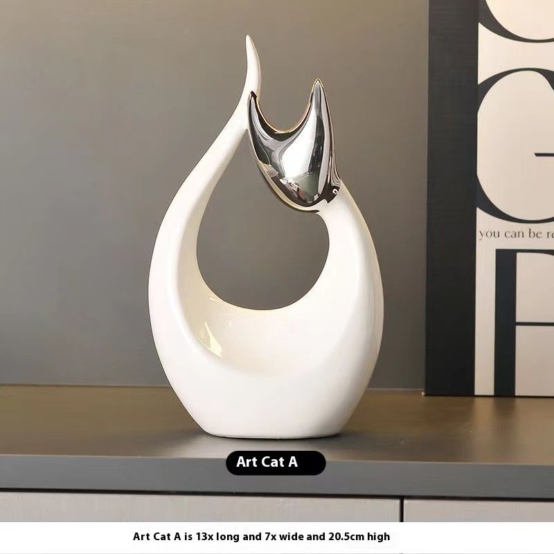 Nordic Simple Modern Lucky Cat Decoration Ceramic Light Luxury Art Cat Silver A