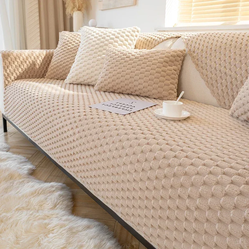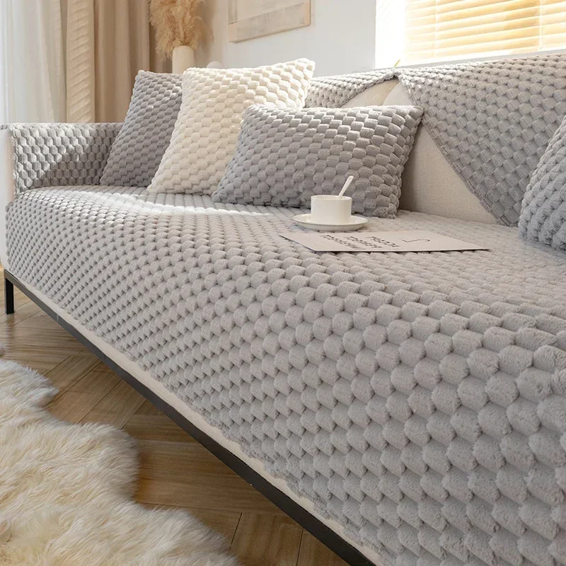 Nordic Sofa Cover Living Room Thicken Plush Couch Mat Non-Slip Universal Sectional L Shape Sofa Slipcovers Towel Protector Home