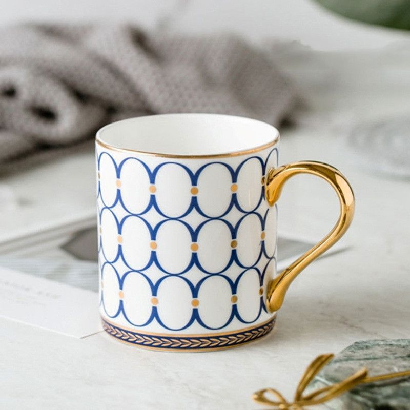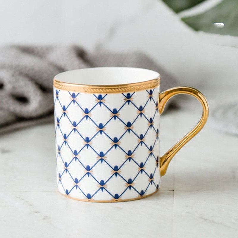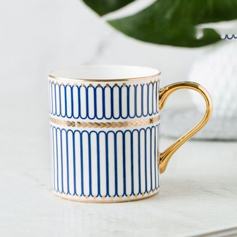 Nordic Style Ins Light Luxury Gold Painted Ceramic Cup Blue pattern