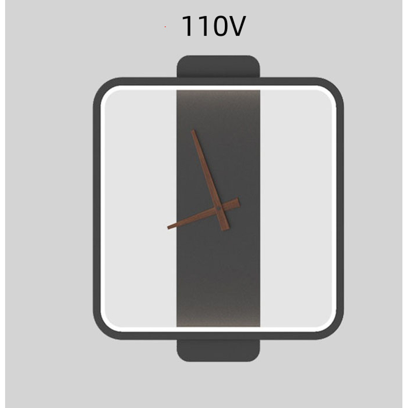 Nordic Wall Lamp Bedroom Bedside Lamp Clock Modeling Lamp Black square style110V