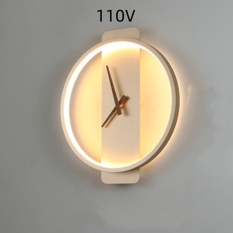 Nordic Wall Lamp Bedroom Bedside Lamp Clock Modeling Lamp Golden round style110V