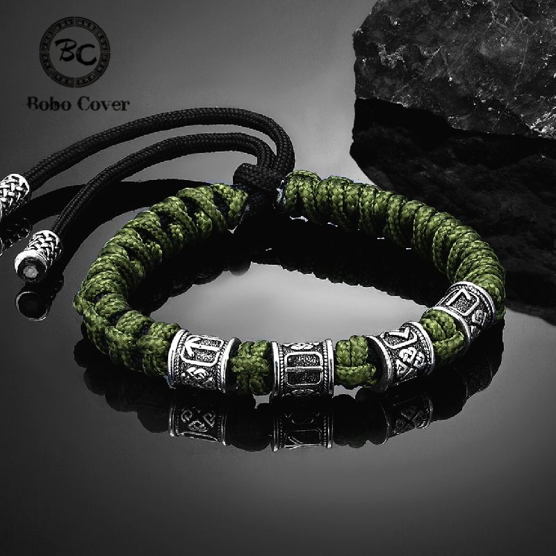 Norse Runes Beads Bracelet Men Vikings Accessories Braided Survival Paracord Rope Wristband Handmade Outdoor Amulet Bangle homme