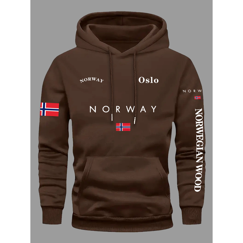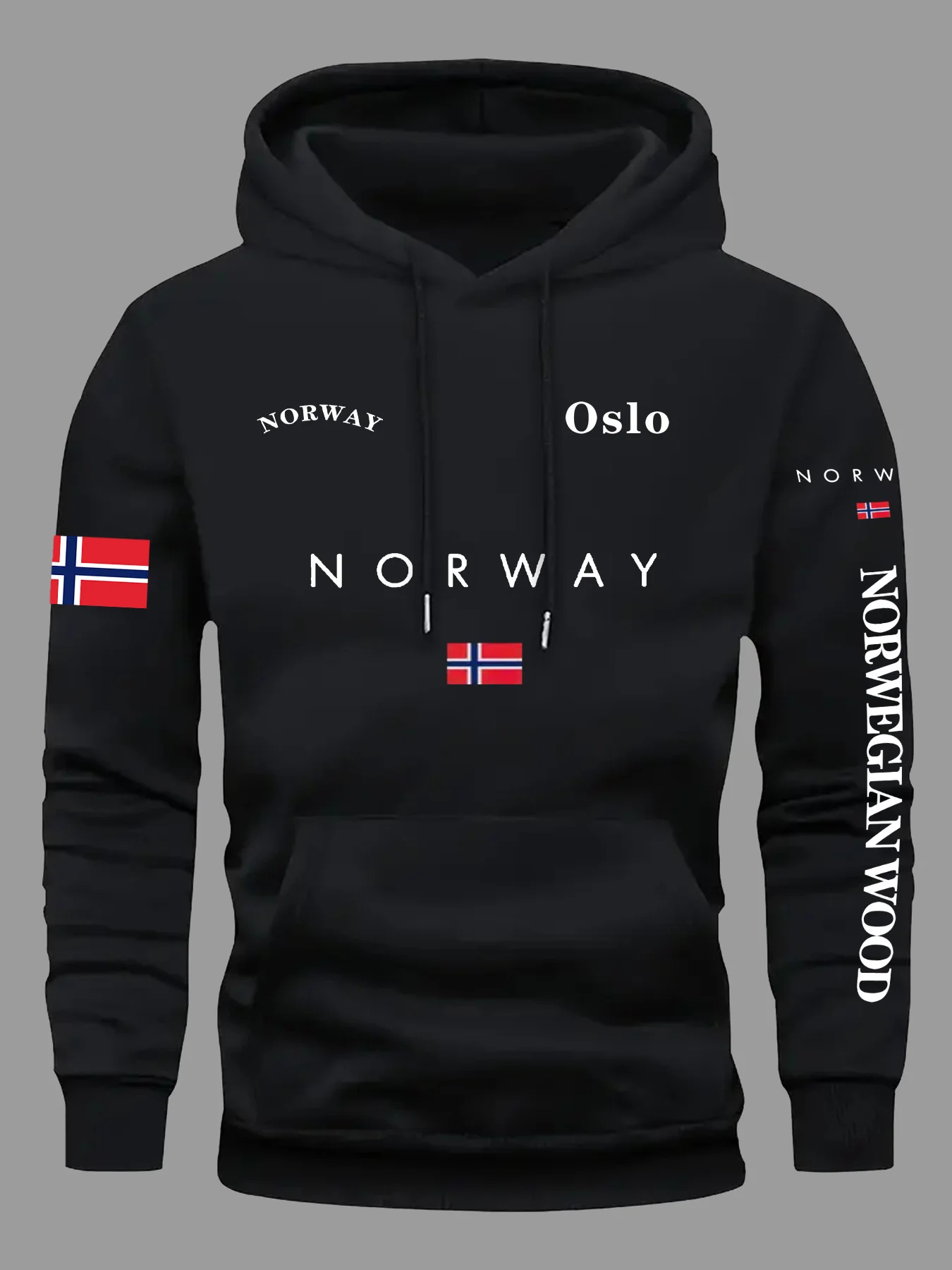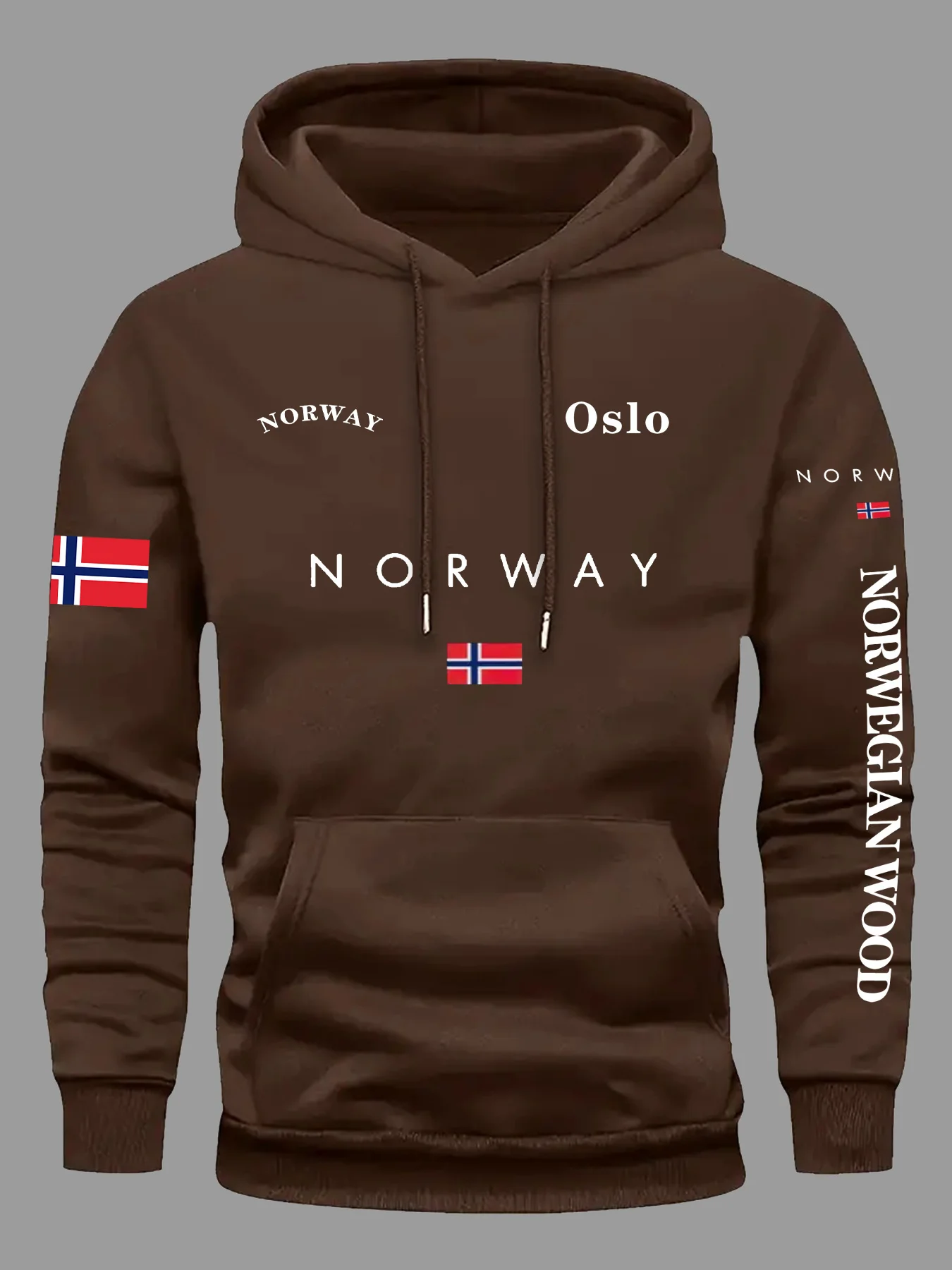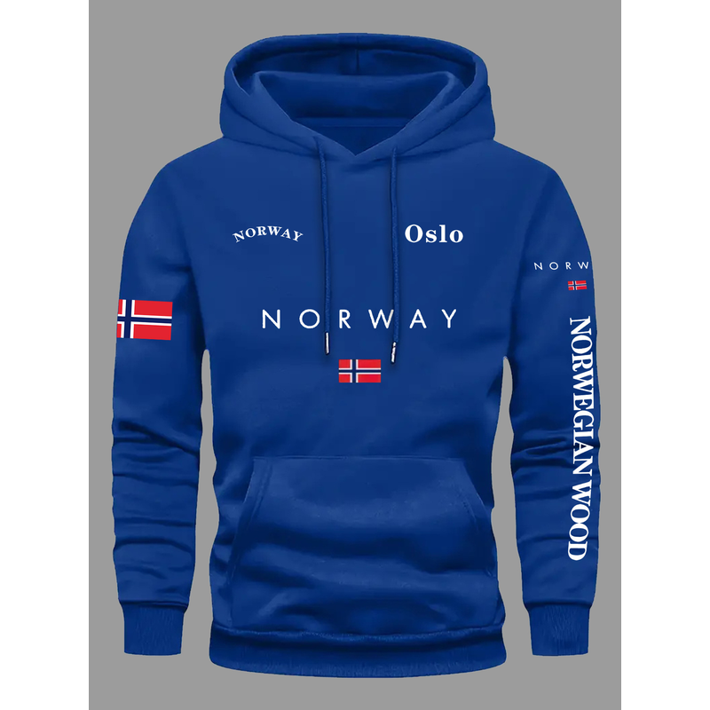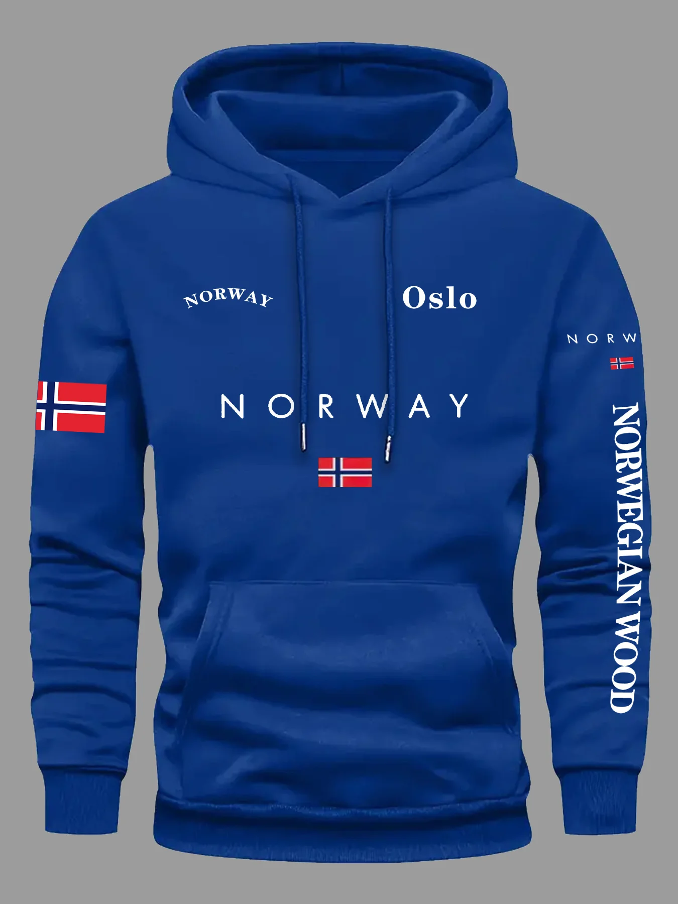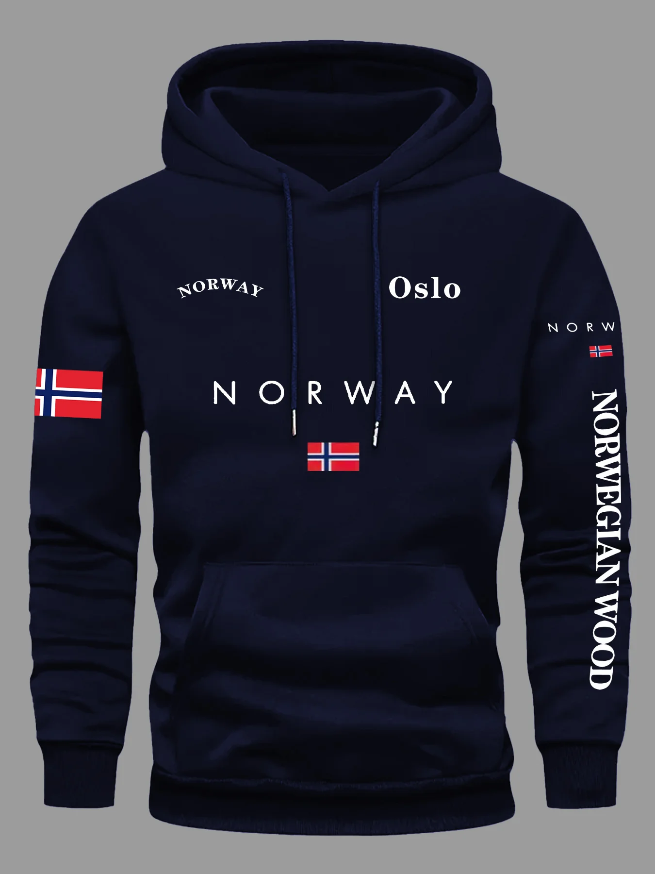 Norwegian Flag Print Trend Men Women Hooded Sweatshirt Autumn Winter Daily Outdoor Vacation Fitness Casual Loose Warm Sportswear