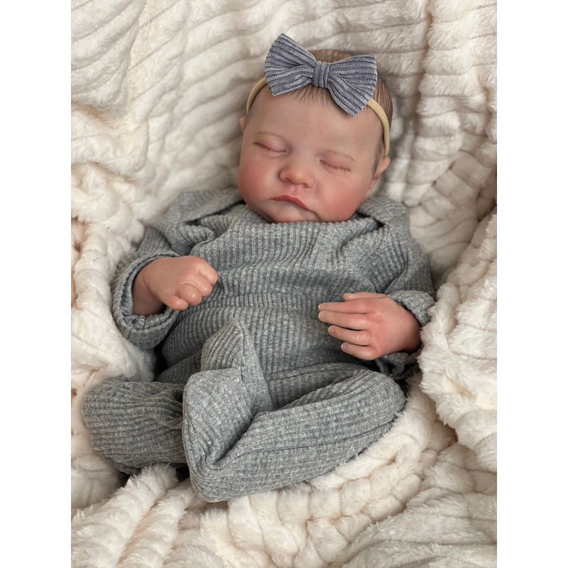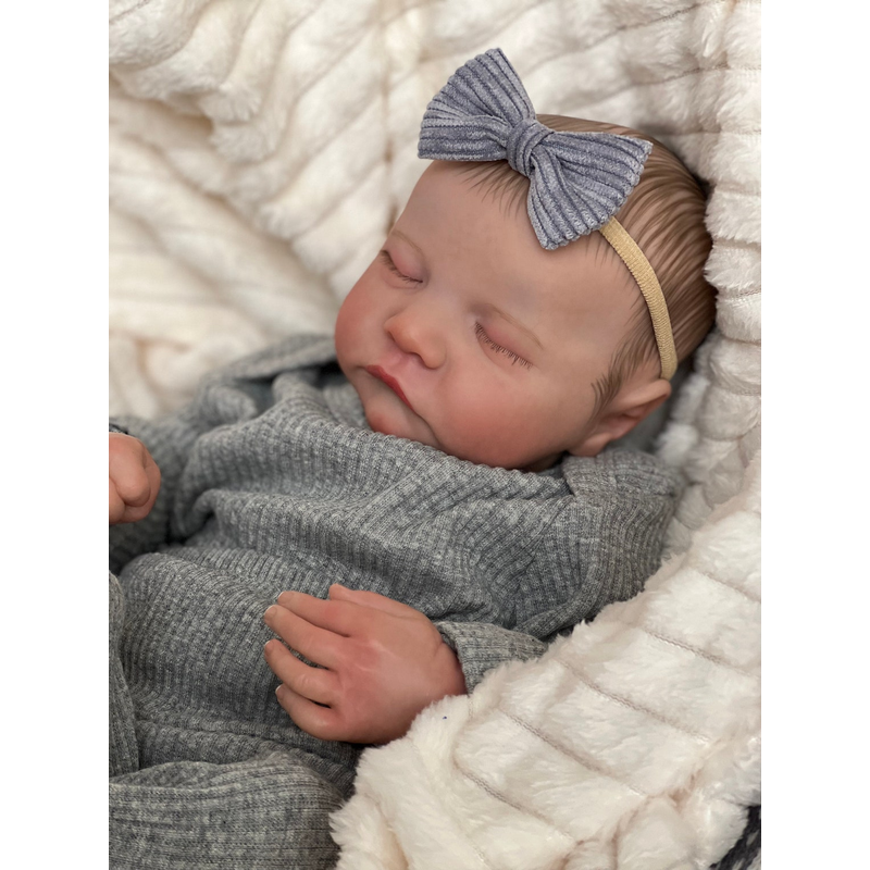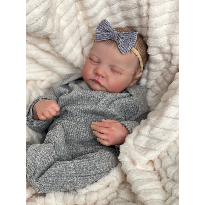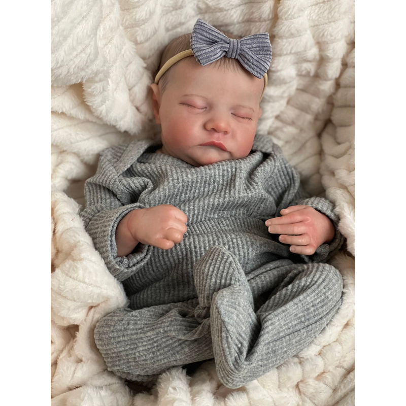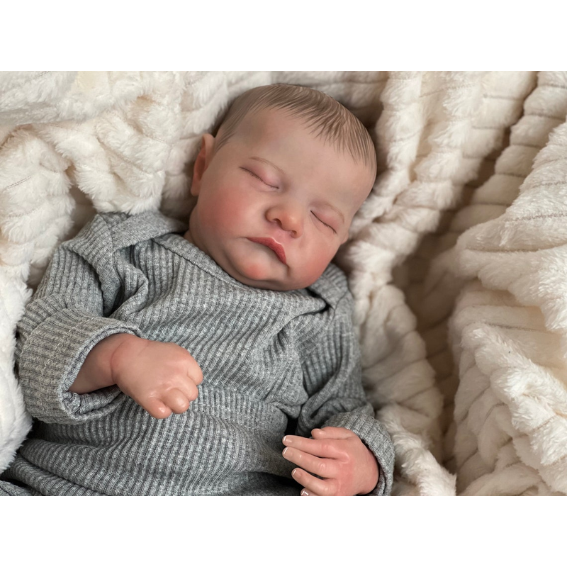 NPK 49CM Levi Newborn Baby Doll Reborn Sleeping Soft Silicone Flexible 3D Skin Tone with Visible Veins Hand Paint Hair Doll