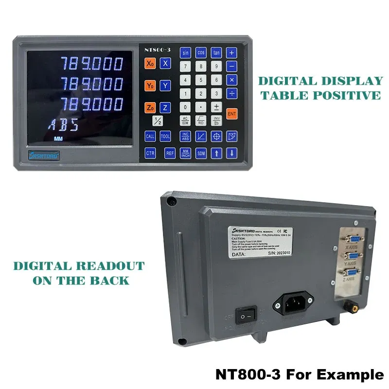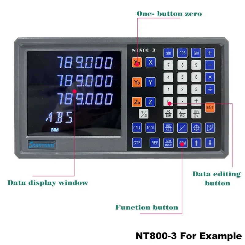 SNSNTDRO NT800 is 2/3 axis LCD DRO set in 9 languages, which is convenient for users in different countries, easy to operate, and complete functions. Widely used in lathes, milling machines, grinders, wire cutting, drilling machines, etc.