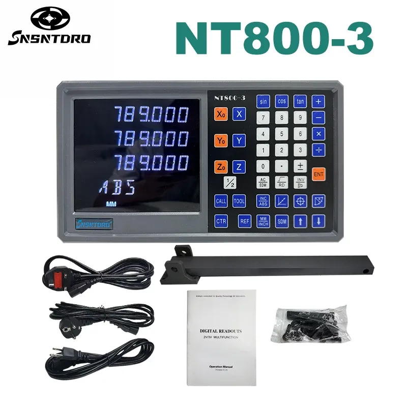 SNSNTDRO NT800 is 2/3 axis LCD DRO set in 9 languages, which is convenient for users in different countries, easy to operate, and complete functions. Widely used in lathes, milling machines, grinders, wire cutting, drilling machines, etc.