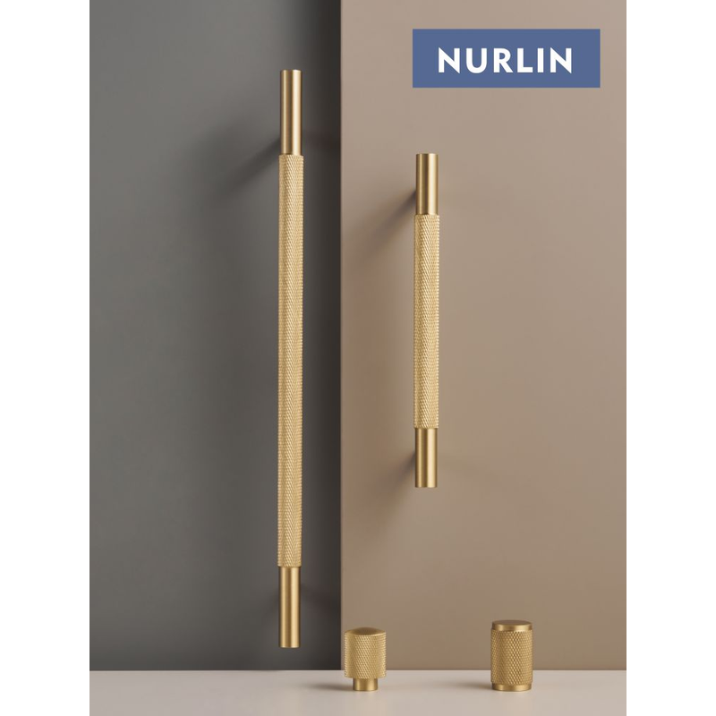 Nurlin Brass Diamond-cut Cross Knurl Pattern Gold Black Cabinet Handles Wardrobe Pull T-bar Knobs 500mm Long Available Kitchen