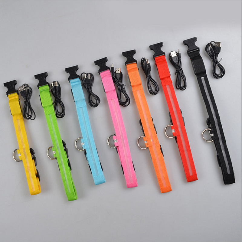 USB rechargeable version: 1 nylon LED safety light collar for pets + 1 USB cable