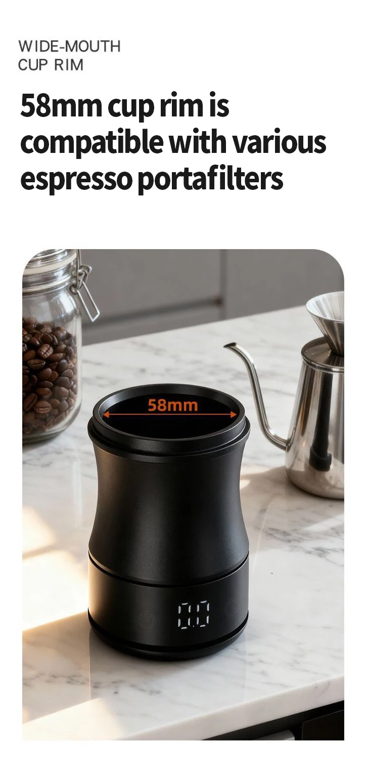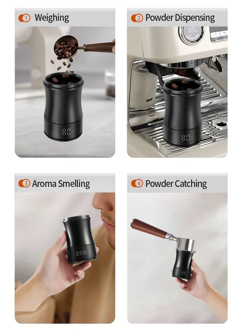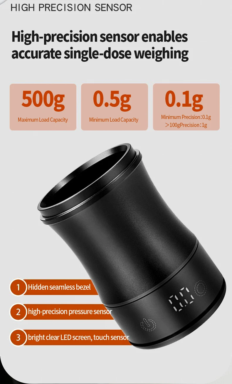 OANKR 58mm Dosing Cup with 0.1g High-precision Coffee Scale Station, 2 IN 1 LED Display Espresso Tools, Chic Barista Tool Gift