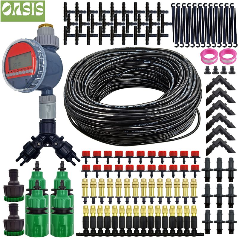 OASIS 5-50M Garden Micro Drip Irrigation Automatic Watering System Kit Timer Controller DIY Mist Spray Cooling for Potted Plants