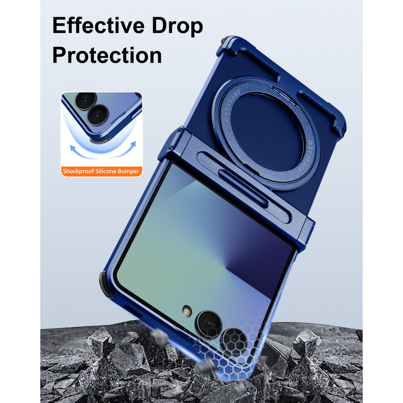 Oatsbasf Metal Frameless Phone Case for Samsung Galaxy Z Flip 7 with Ring Stand Magnetic Bumper Thin Shockproof Protective Cover