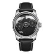 OBLVLO Fashion Men Three Wheels Automatic Watch Creative Earth Dial Blue Luminous Leather Strap Watches for Businessmen JM-EARTH