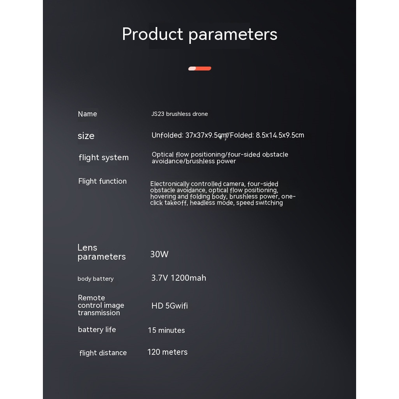 Function: Folding four axes, fixed height in the air, up/down, left/right turn, forward/backward, left and right flying, 3D rolling, rolling conversion, headless mode, WiFi camera recording, photography, optical flow positioning, 5G image transmission