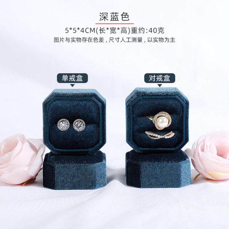 Octagon Velvet Jewelry Box Double Ring Storage Box With Detachable Lid For Engagement Wedding Ring Packaging Display Gift Box
