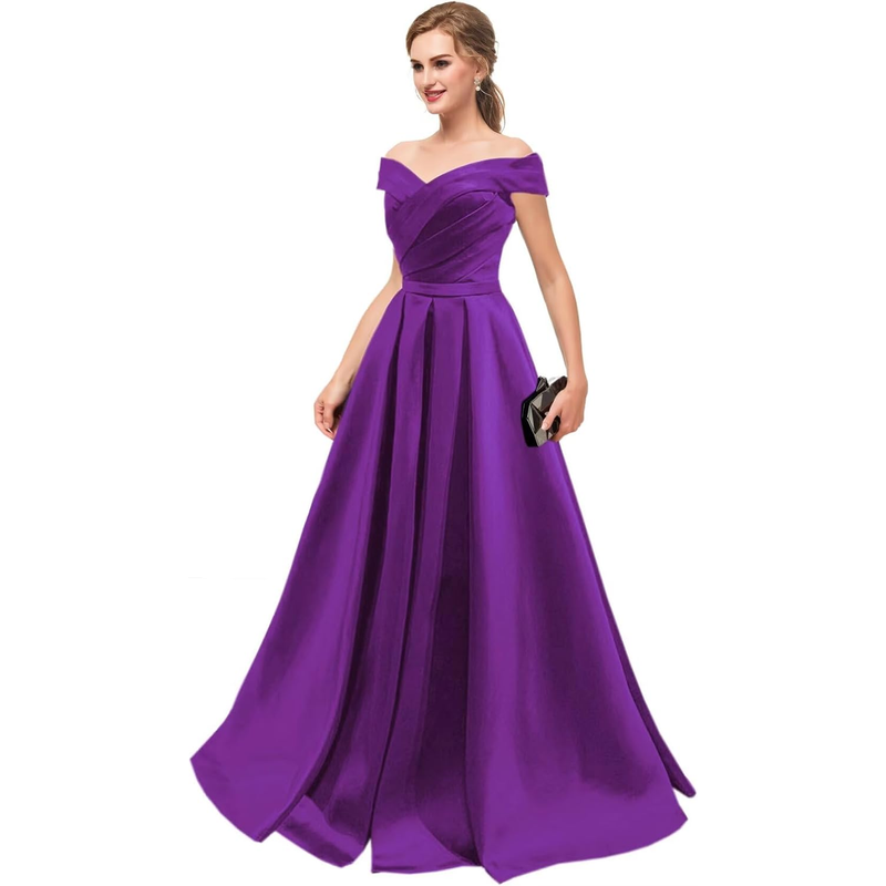 Off The Shoulder Prom Dresses Long with Pockets A Line Formal Evening Ball Gowns Satin Party Dress 2026 Customized