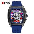 OFNS1209 Luxury Men Quartz Watch Silicone Strap Hollow Watches Mens Waterproof Sports Wristwatches Relogio Masculino