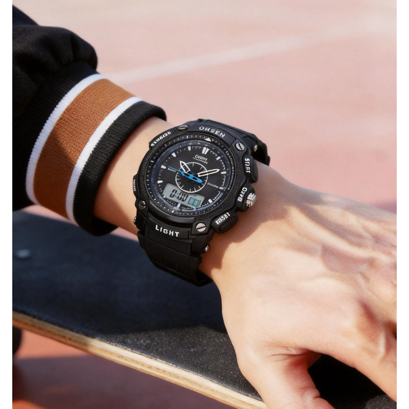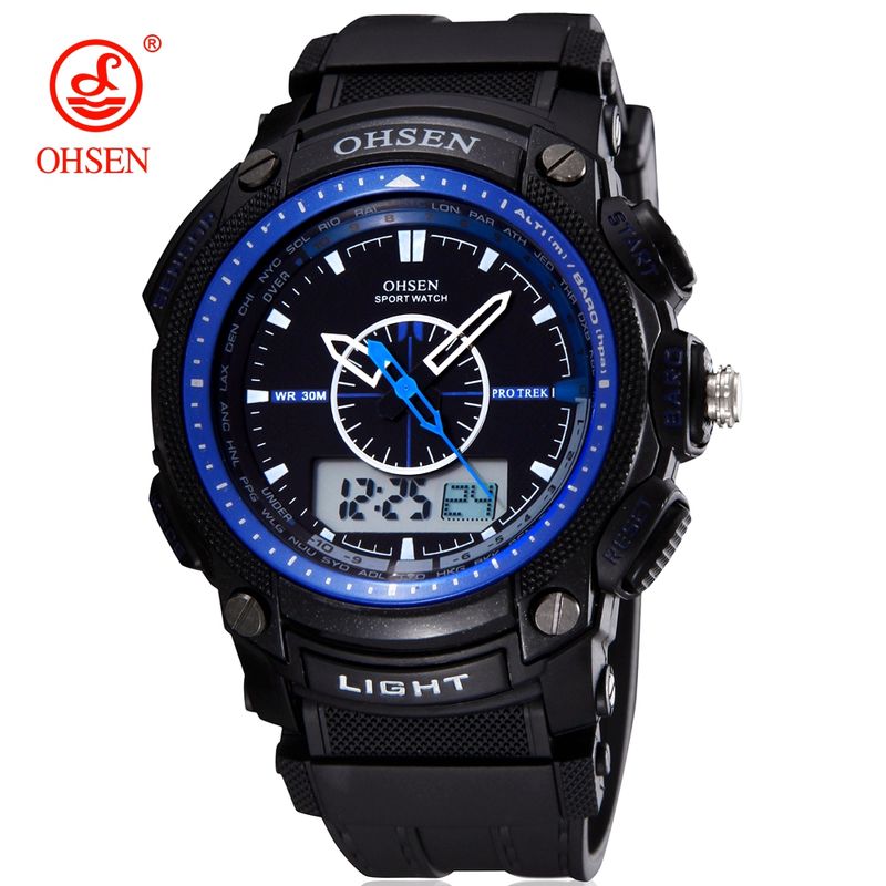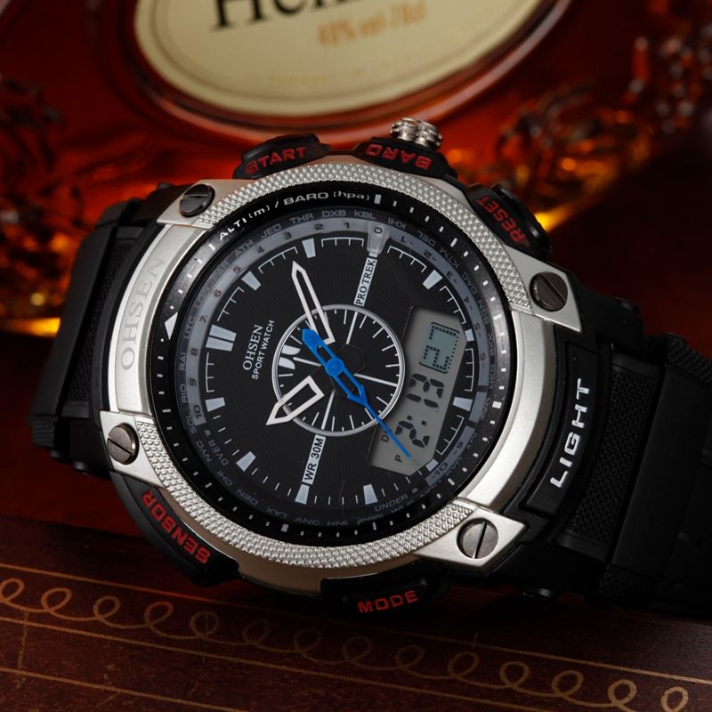 Multi-function Watch: Dual time Display, Auto Date, Week, Alarm, Water Resistant, LED display, Shock Resistant, Stop Watch, Back Light