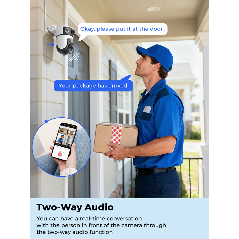 Built-in microphone and speaker, loud volume; You could talk to anyone nears the camera ( Warn someone to leave your house ).