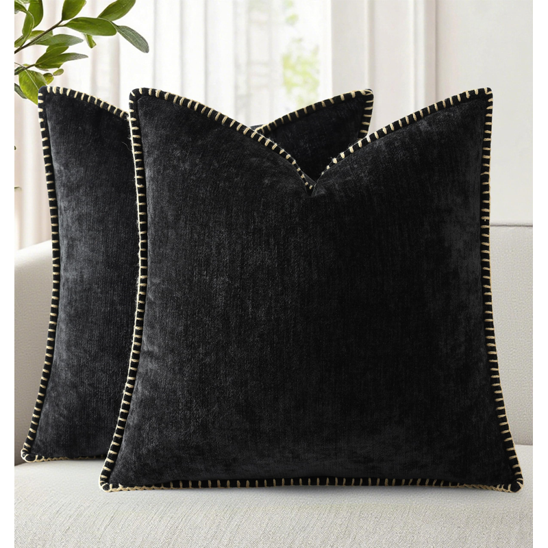 modern pillow covers are designed with brown linen stitching around the outside edges, a nice contrast to the chenille, which adds character to the decorative pillow covers and provides a modern farmhouse style to your room