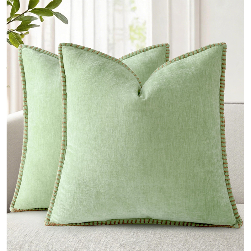 modern pillow covers are designed with brown linen stitching around the outside edges, a nice contrast to the chenille, which adds character to the decorative pillow covers and provides a modern farmhouse style to your room