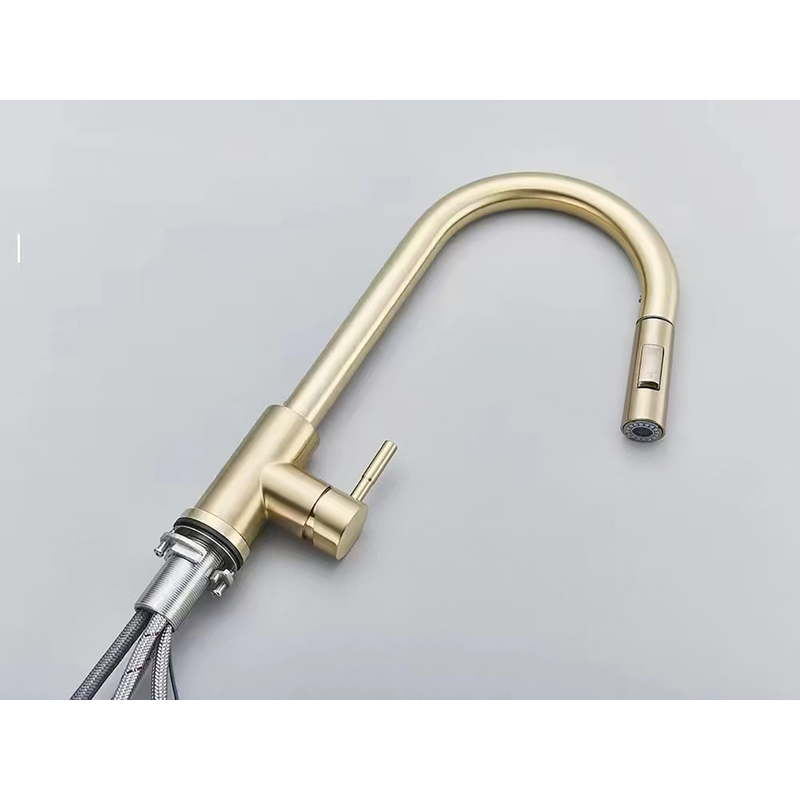 Design & Colors: Available in brushed gold, chrome, and other finishes. Features a pull-out design with a button switch for changing water flow modes.