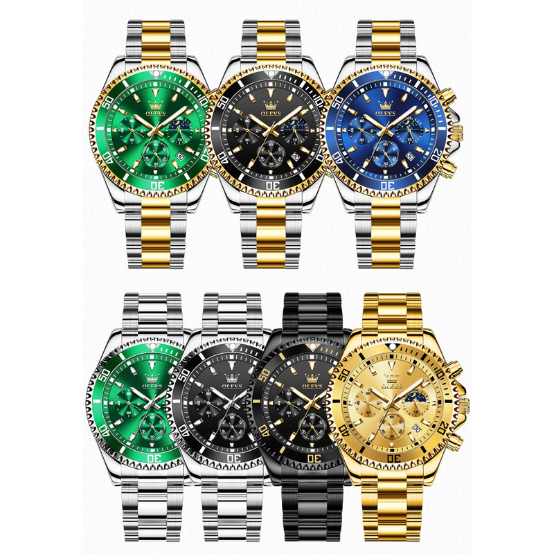 OLEVS 2870 Chronograph Quartz Business Men Watch Fashion Moon Phase Waterproof Watch For Men Stainless Steel Original Wristwatch