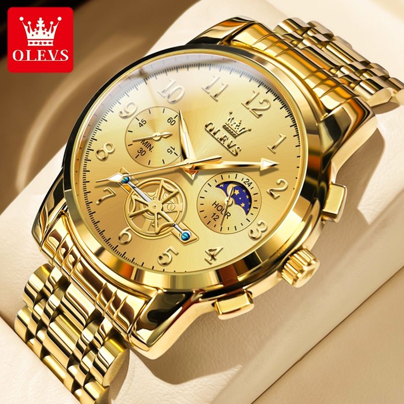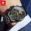 OLEVS 2900 Moon Phase Watch Men Stainless Steel Waterpoof Luminous Fashion Skeleton Chronograph Quartz Wrist Watch for Men NEW