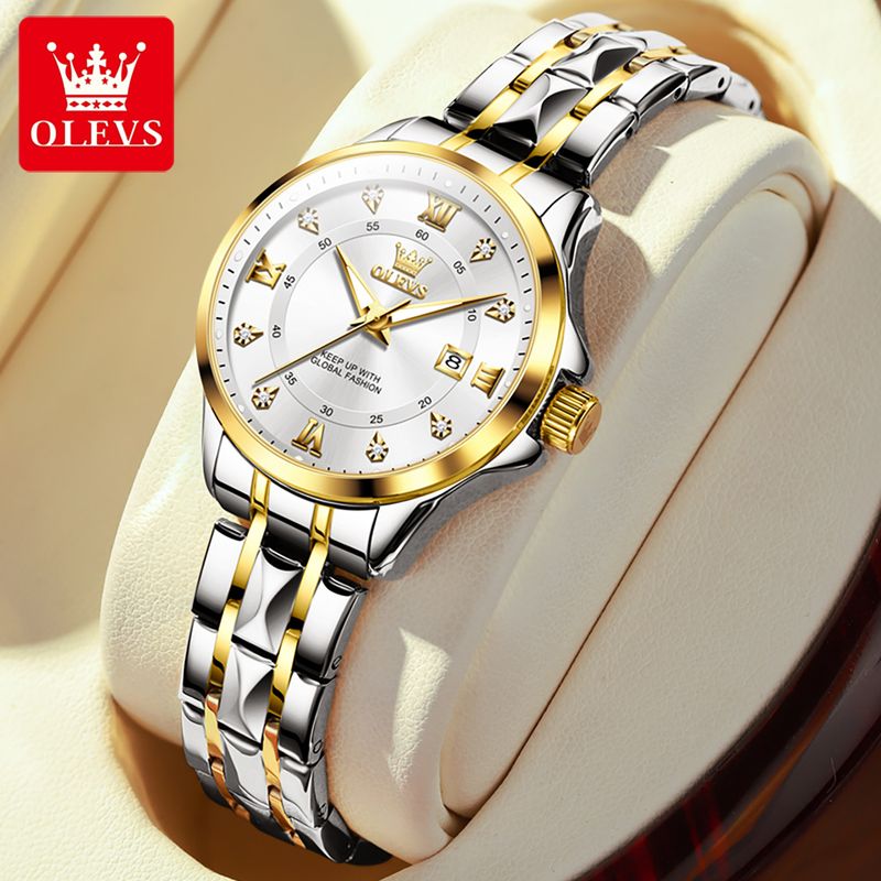 OLEVS 2906 Fashion Date Quartz Couple Watches Diamond Top Brand Luxury Watch For Men Women Waterproof Stainless Steel Wristwatch