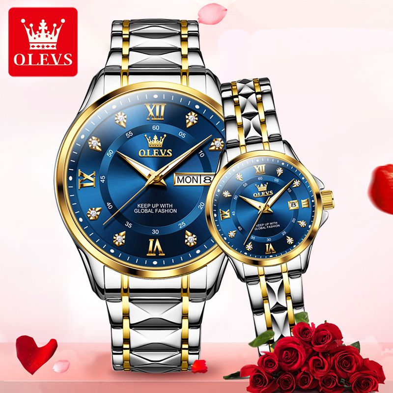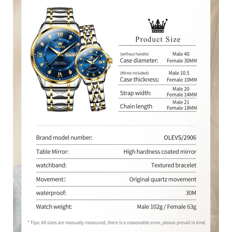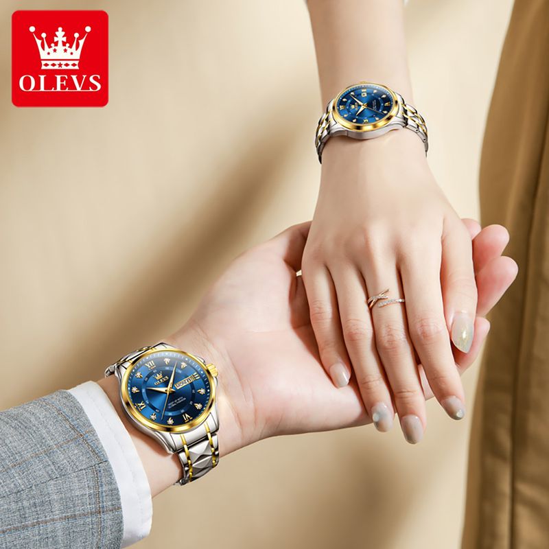 OLEVS 2906 Fashion Date Quartz Couple Watches Diamond Top Brand Luxury Watch For Men Women Waterproof Stainless Steel Wristwatch
