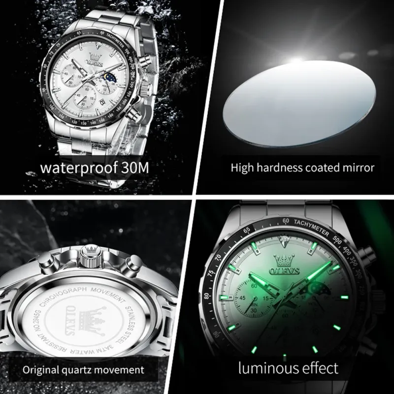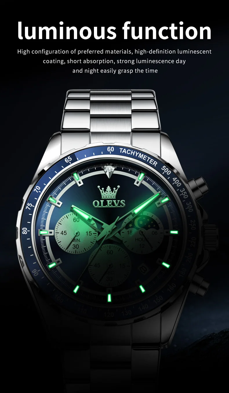 OLEVS Luxury Brand Men's Watch Top Business Original Waterproof Luminous Multi functional Small Dial Classic Men's Quartz Watch