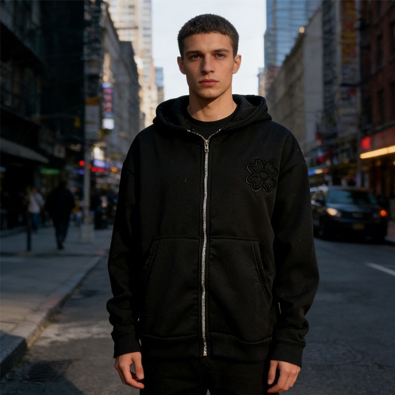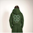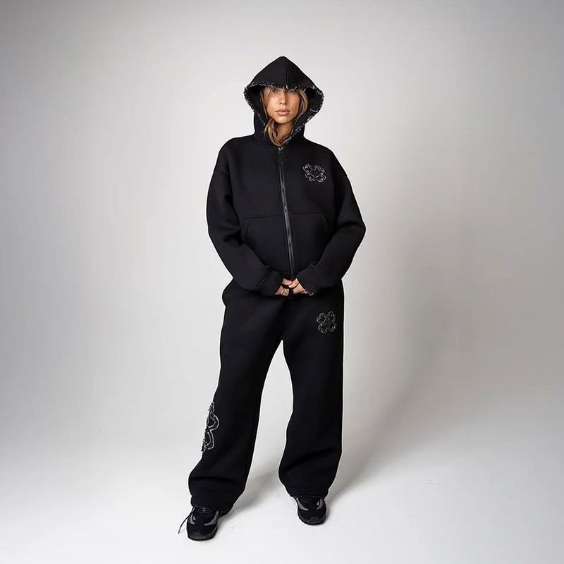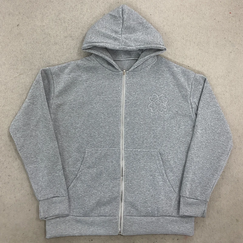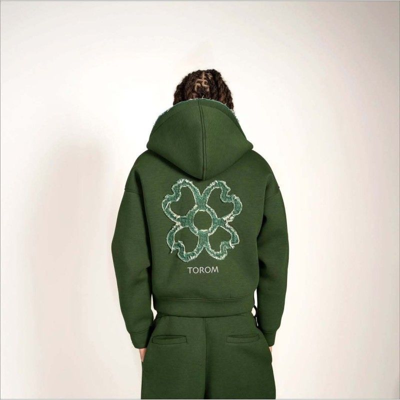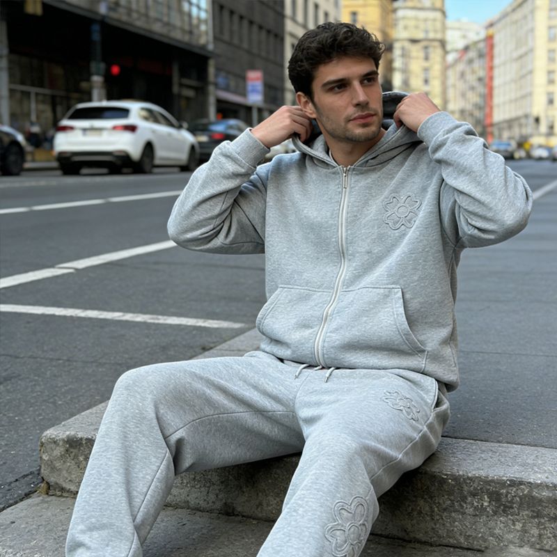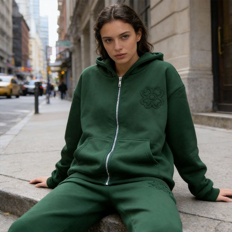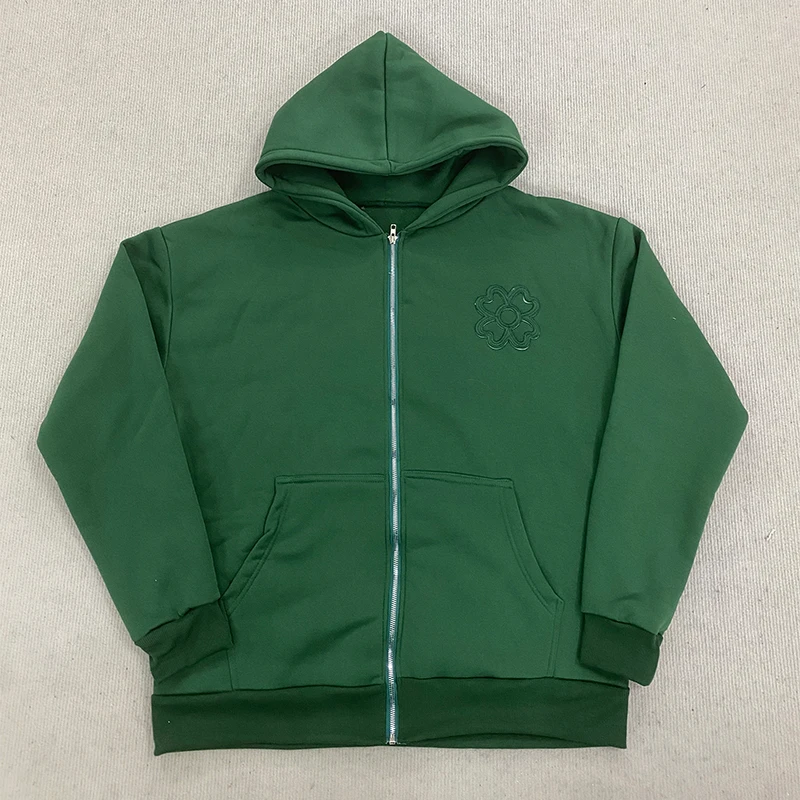 Olive Green Embroidered Zip Hoodie & Pants Set Men Streetwear Trendy Loose Casual 2-Piece Tracksuit New 2025 Fashion