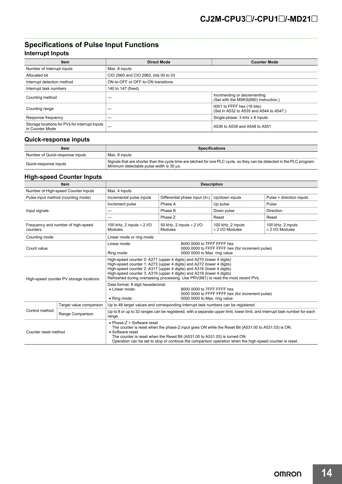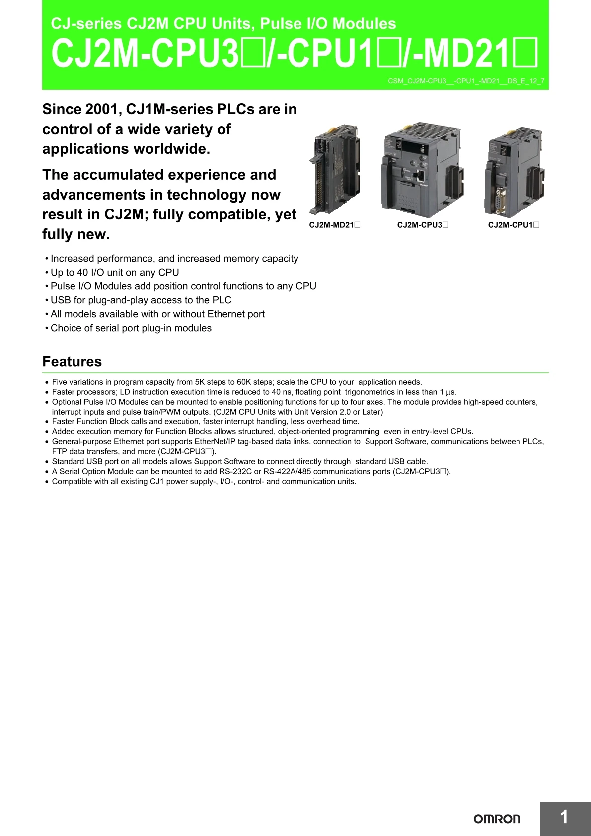 Omron plc cpu unit CJ2M-CPU33