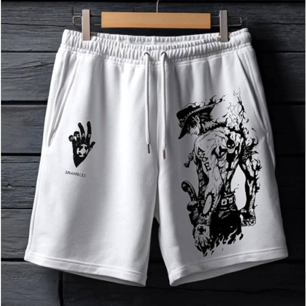 ONE PIECE Animation Luffy Sauron Peripheral Printed Cotton Shorts American Summer Men's Daily Loose Sports Breathable Pants