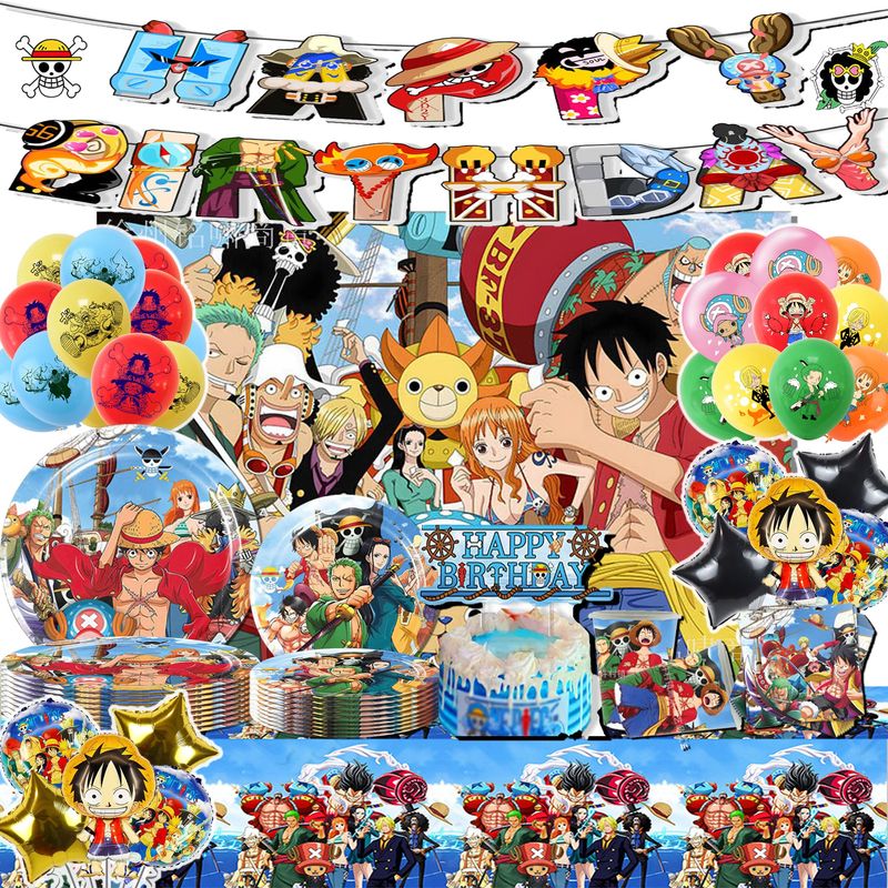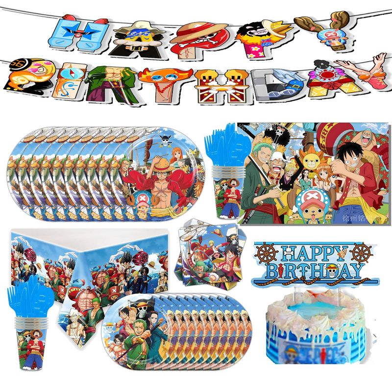 One Piece Birthday Party cutlery plate Disposable Banner Cake Topper Hanging Flag One Piece Luffy Balloons Birthday Decorations