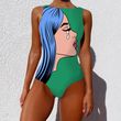 One-piece Fashion Vintage Abstract Print Lady Swimsuit Women Sleeveless Round Neck Bikini Swimwear Summer Push Up Swimsuit 12style L