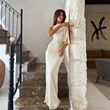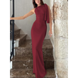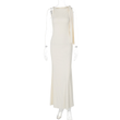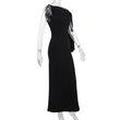 One-shoulder Ribbon Long Dress Ins Fashion Slim Sleeveless Dresses For Evening Party Club Clothing Women Blue L