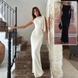 One-shoulder Ribbon Long Dress Ins Fashion Slim Sleeveless Dresses For Evening Party Club Clothing Women Grey S