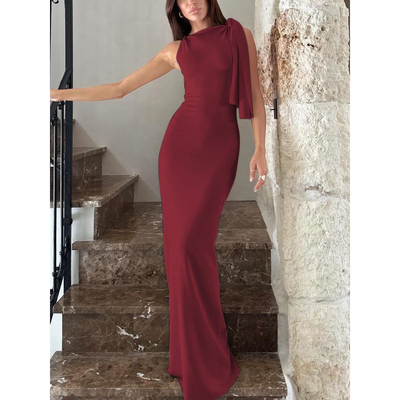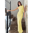 One-shoulder Ribbon Long Dress Ins Fashion Slim Sleeveless Dresses For Evening Party Club Clothing Women Yellow L