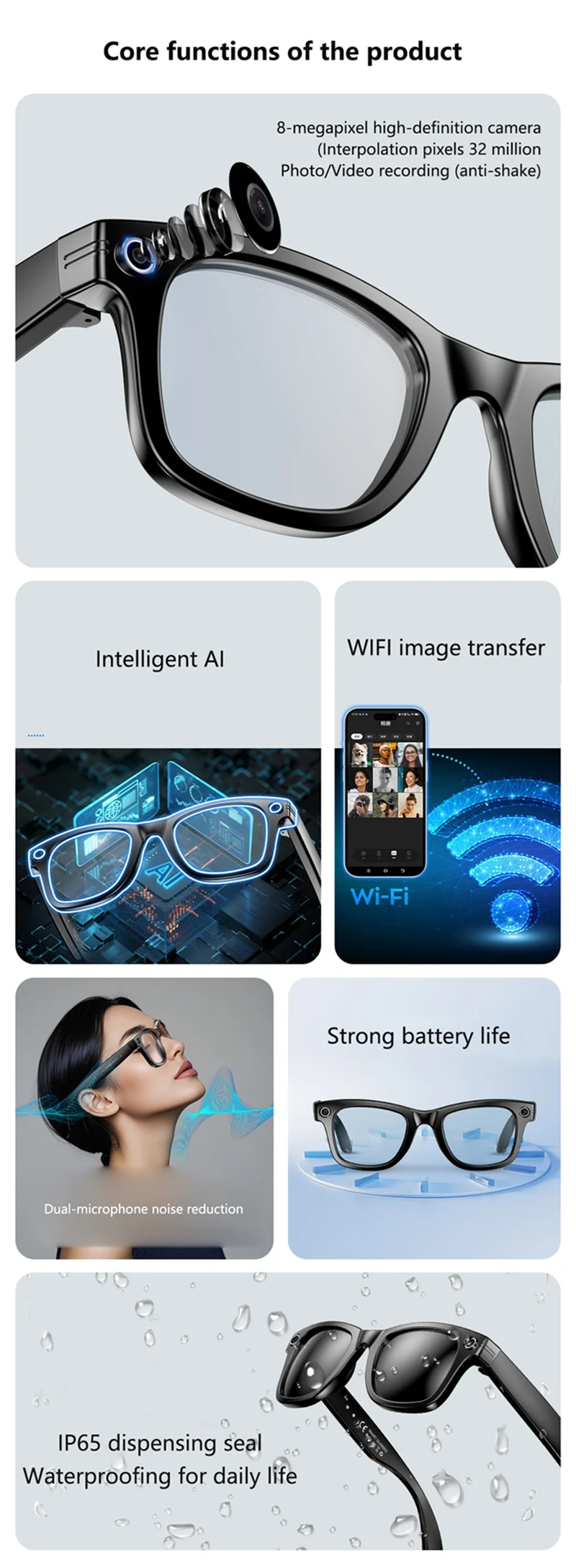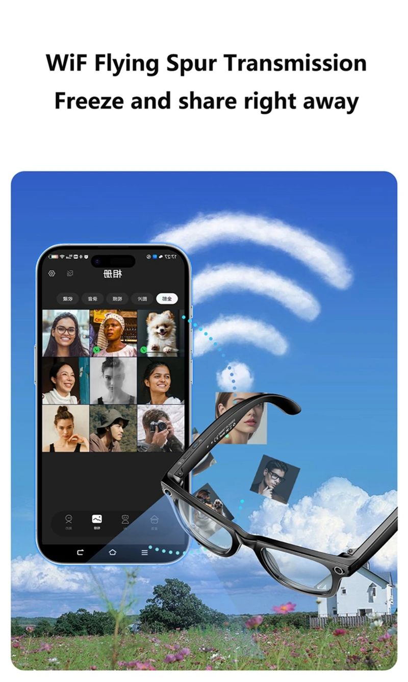 Wifi transmission: Seamlessly share your experiences with friends and family through the glasses' built-in WiFi transmission capabilities.