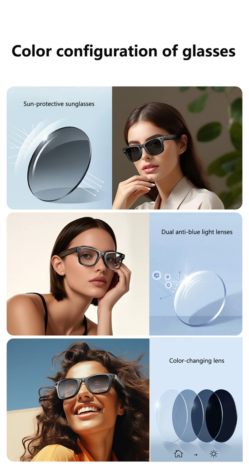 These smart glasses are not just about technology; they're also about style. The sleek design doubles as sunglasses, offering UV protection and a stylish look. Whether you're out for a casual stroll or attending a business meeting, these glasses are versatile enough to fit any scenario. The AI Voice Assistant feature makes these glasses an indispensable tool for anyone looking to streamline their daily tasks and stay connected without the need for a phone.