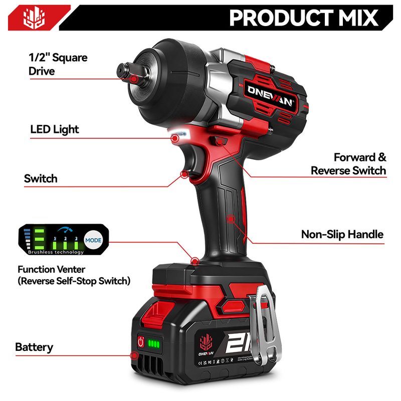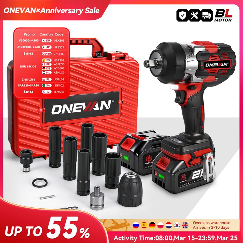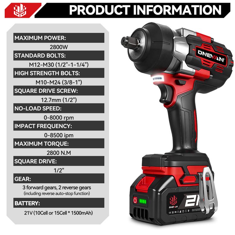 ONEVAN 2800N.M Brushless Electric Impact Wrench 1/2 Inch Cordless Torque Wrench Drill Power Tool For Makita 18V Battery Pin