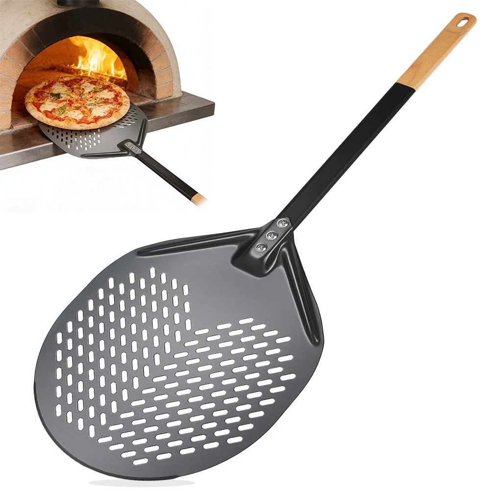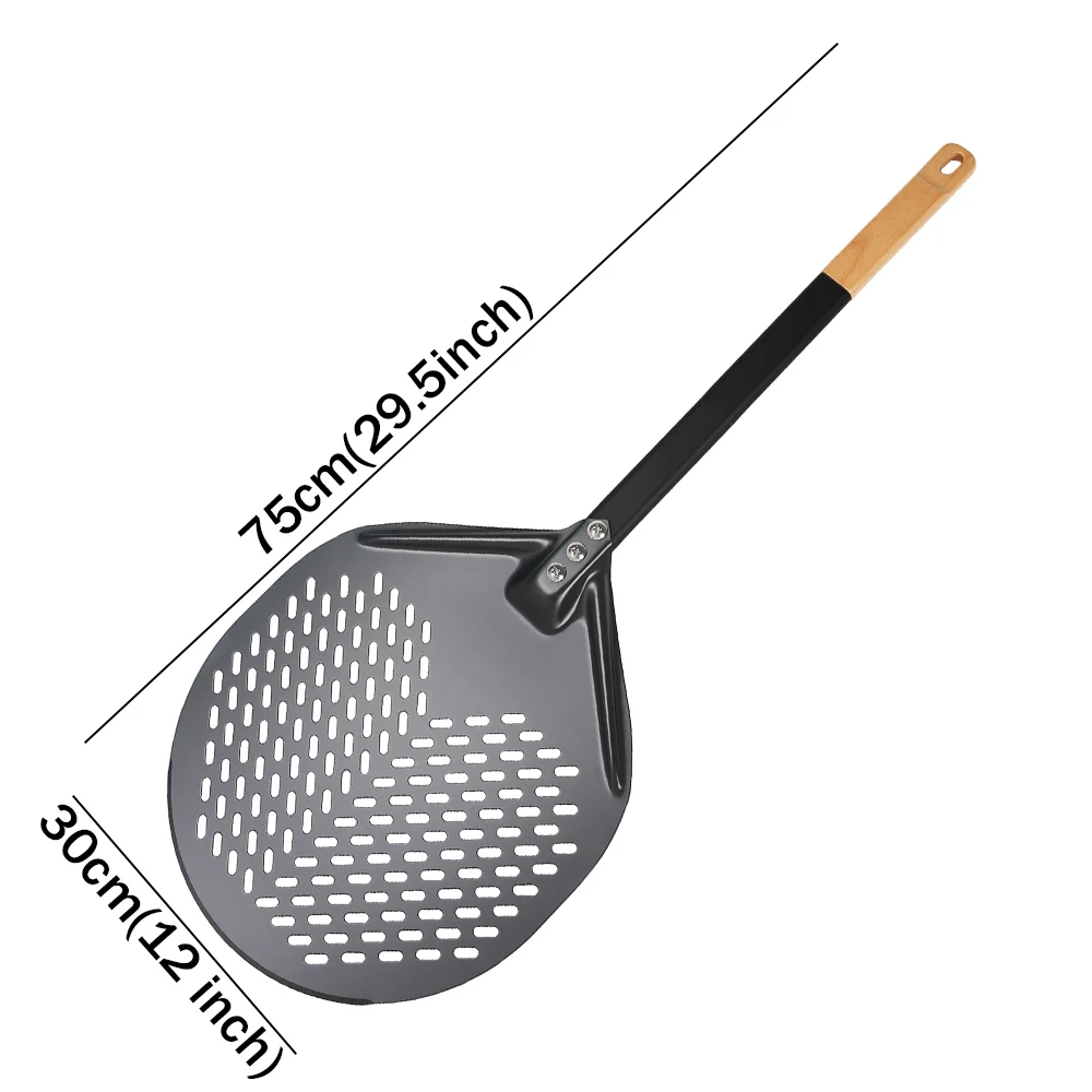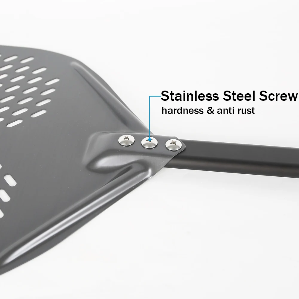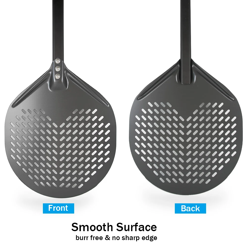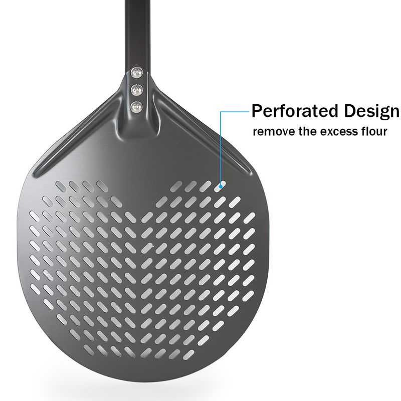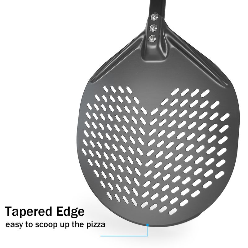 The perforations pizza peel allow excess flour to fall away and steam to quickly evaporate. Get the perfectly crisp crust without burnt flour and nasty singed flour marks. Our tapered edge blade pizza peel helps you slide and launch pizzas more easier, ensuring perfect results every time. Helping you prep, slide, turn, or retrieve your delicious pizza like a pro!